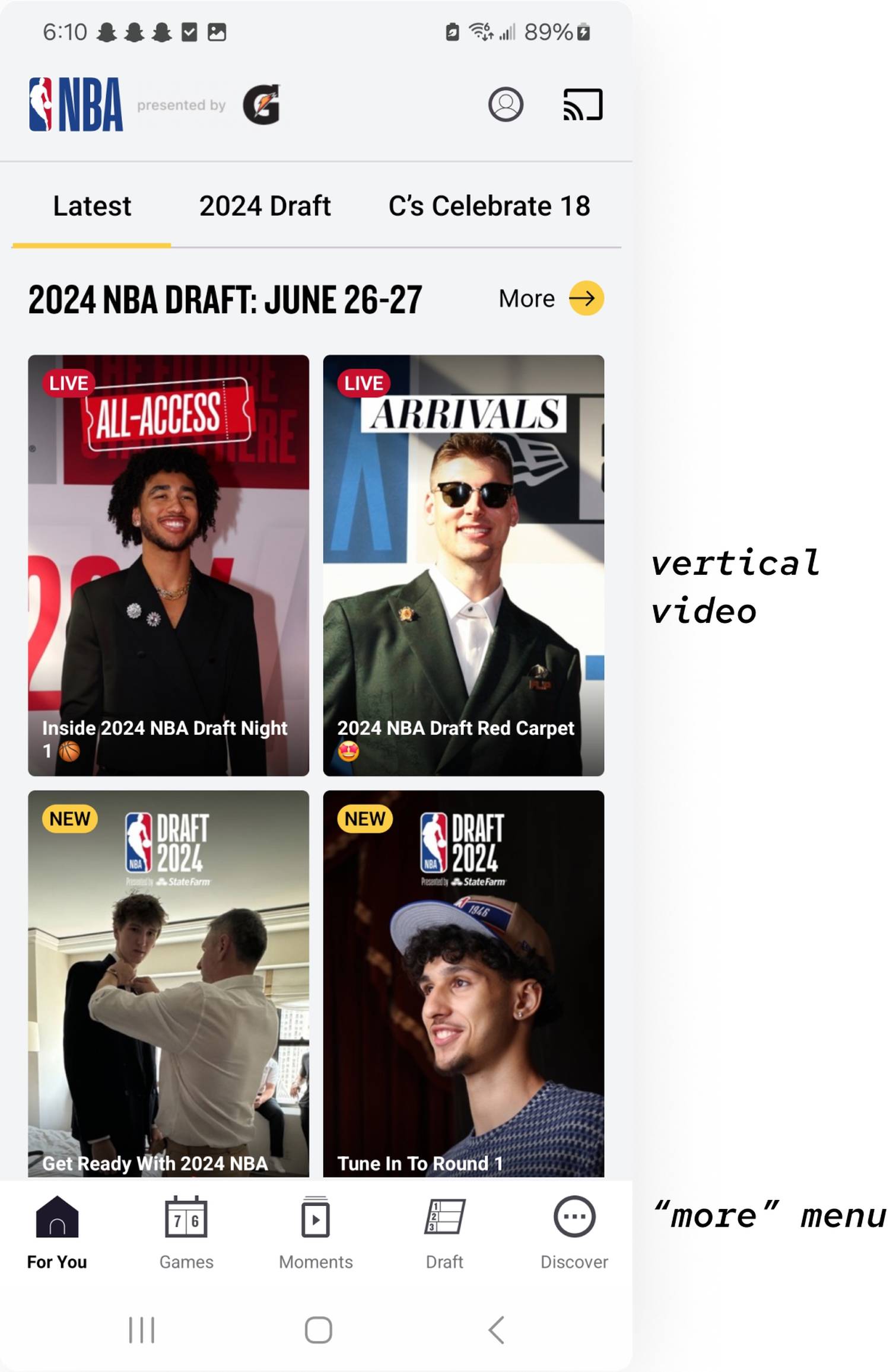 Keeping this in mind, I started designing the home page using inspiration from the layouts used in the NBA app. I also worked on improving the video page and menu. I created initial designs of various features and spent more time and resources on features that my team thought would be best to implement sooner, depending on time constraints, outside work, and developmental restraints.