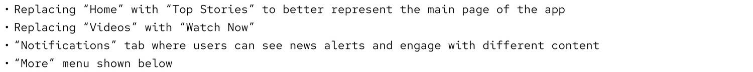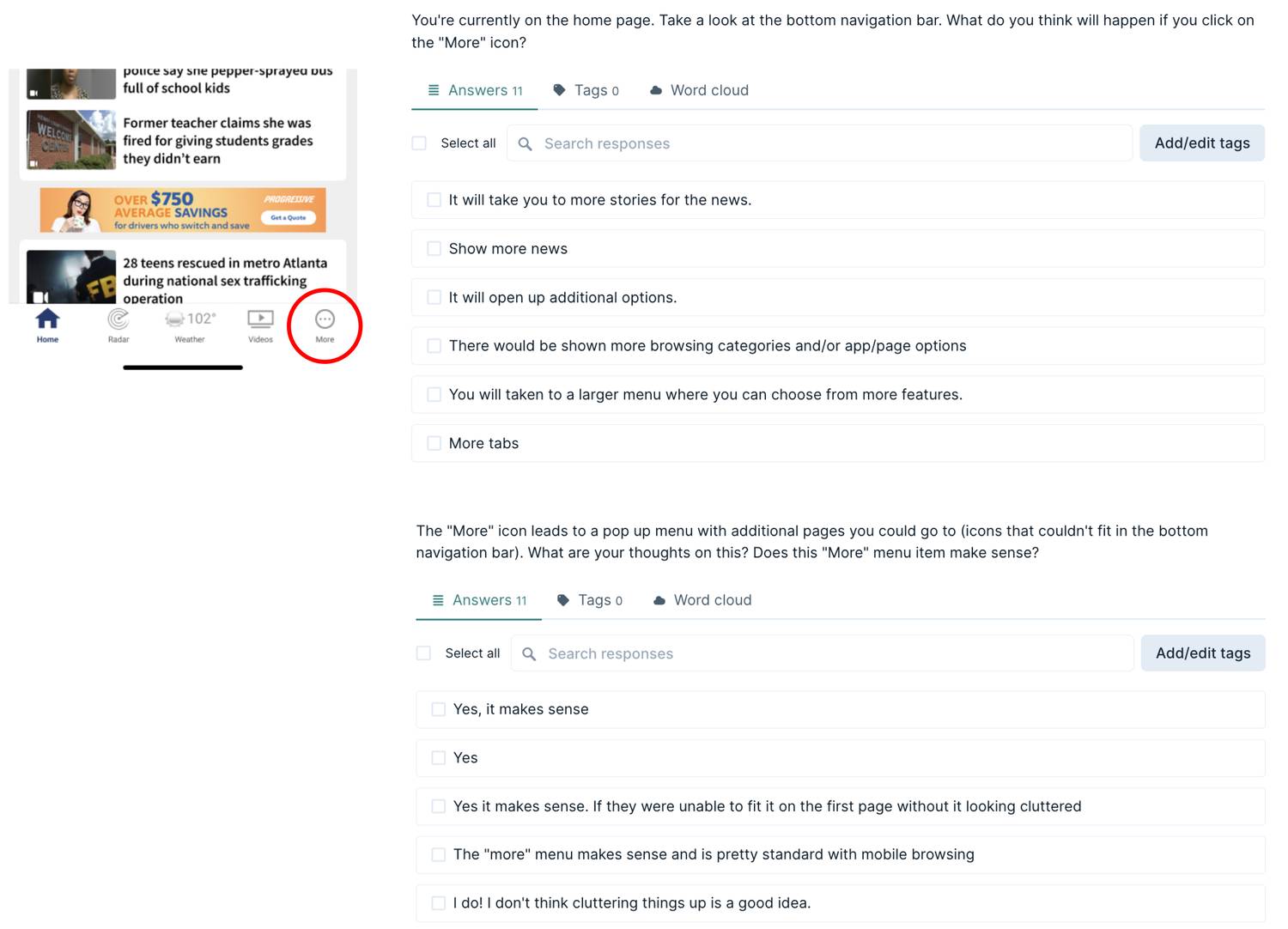 - Most participants believed that the "More" tab bar would open a menu with additional page options